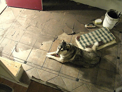 I found you through a comment you made on another blog. I just added you to follow. Nice tile job and I like the color. What really caught my eye is that I also have a Husky and she looks very much like yours, except she doesn’t have the black down her nose {she’s white there}, but the body looks exactly the same – especially when she’s laying on the floor like that!
