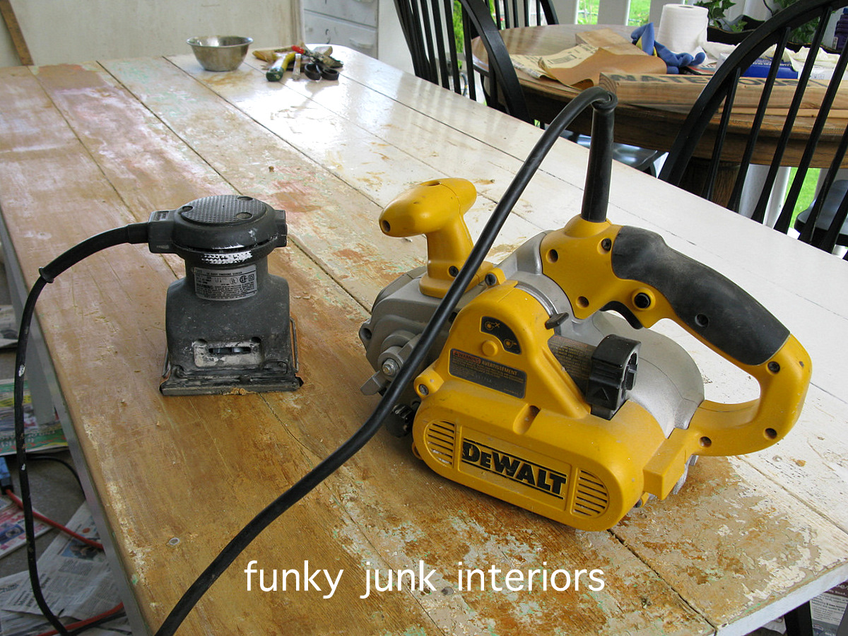 Well, this was no small job. I was using my palm sander and getting nowhere fast. So I borrowed a wood planer. (thanks Default Nice Guy Dan!)