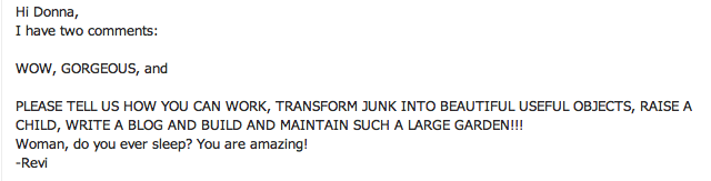 Revi here again! Glad to be a tad useful today. 🙂 As a list maker, I totally appreciate your scheduling and prioritizing. I’m also glad to hear I’m not alone when I photograph a project and it looks all nice and tidy, and behind me is a mess of drop cloths, spray paint cans, etc! I think this is one of the nicest perks of blogging – communicating with others who are on the same page!