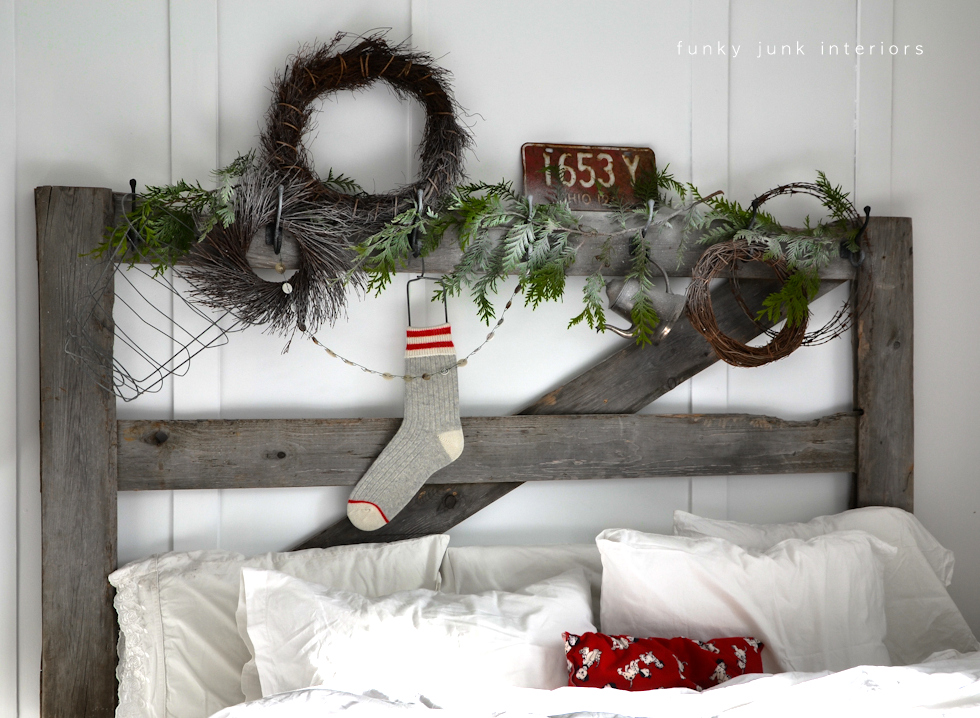 I’ll admit having a horse gate for a headboard can be a really cool thing at times, especially when it comes to seasonal decorating. Those hooks are a decorator’s dream!