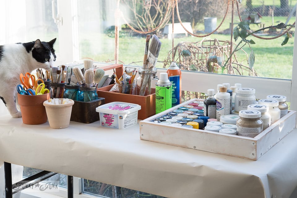 But first off, I couldn’t begin to clean this room without organizing my paint supplies in my photo studio.