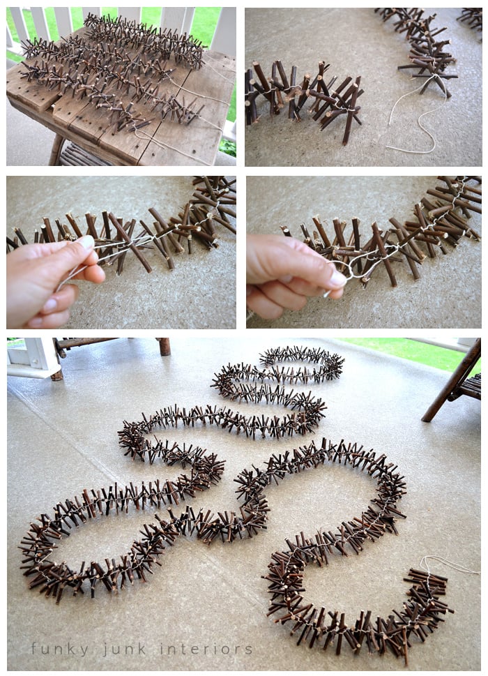 7. After accumulating several shorter twig garland lengths, tie them together to achieve the length of garland desired!