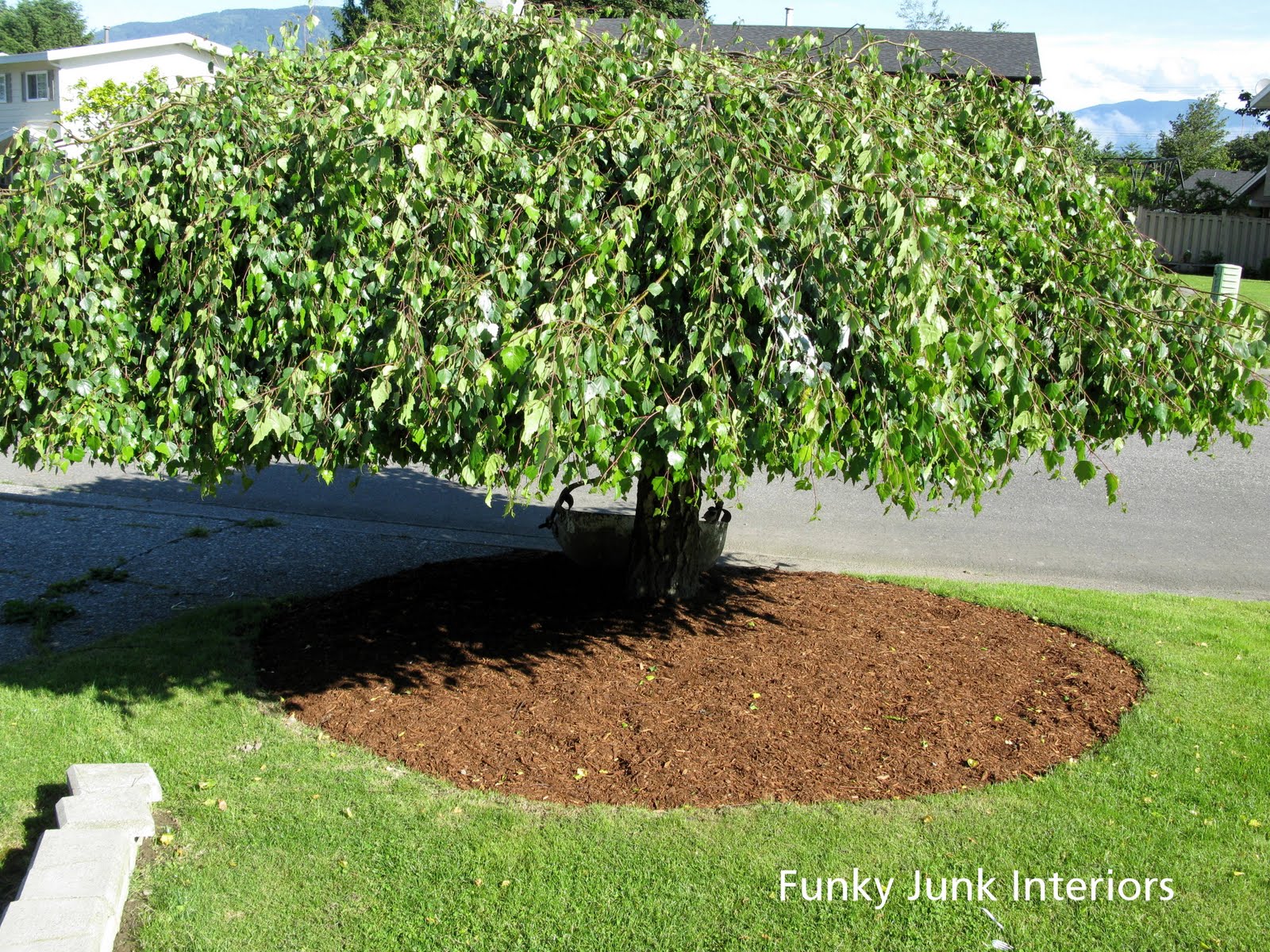 Lastly, this one rates #1 in my book. This thorn in my side tree base of weedy soil finally got some much needed love. My wonderful neighbours knocked on my door last weekend and asked if I cared to partake in their extra bark mulch. I don’t think I’ve ever jumped in my truck so fast to pick up landscape fabric to ‘Gitter Done!’ LOVE!! Thanks Jake and Janette!