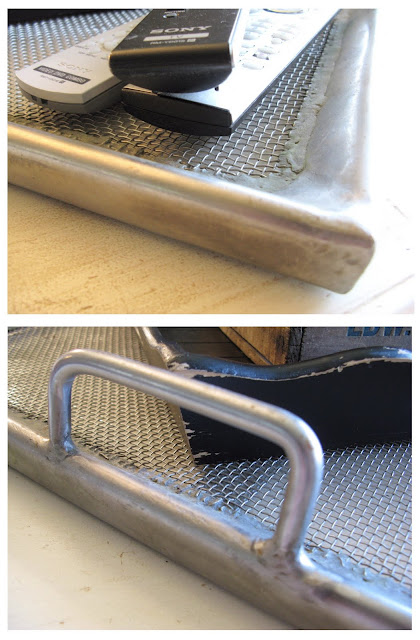 It’s a metal screen of some sort and I’m in love with it! I use it as a tray on my coffee table. Isn’t it wonderful?