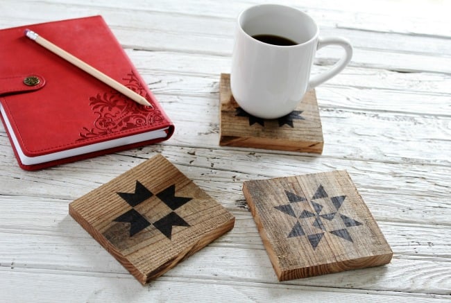 Barn quilt coasters, by Knick of Time, featured on Funky Junk Interiors