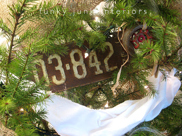 Hi Donna, I am so glad you decided to decorate for Christmas! Everything is wonderful but I especially love the tree with license plates and rusty junque. Fabulous!