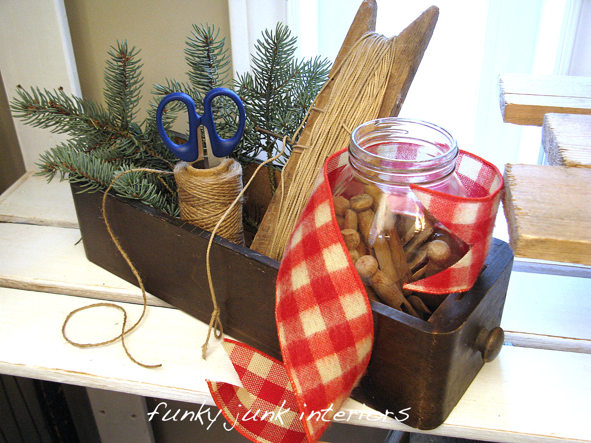 Just love the little touches of gingham ribbon and beads throughout your home mixed in with the old. Everything is simple, rustic and elegant!