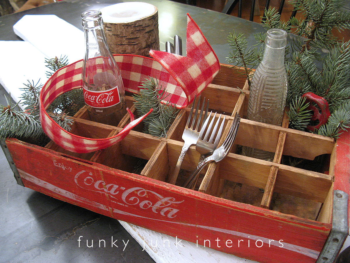 Girl, you are amazing! You make the most random things look absolutely perfect as decorations. I especially love the eye glasses, watch and spigot handle on the Christmas tree. Oh and the pepsi bottles in a wire basket. Sheesh, I wish I could have thought of that. Perfectly charming!