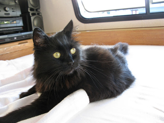 I just posted a campout we did for a birthday on my blog. Camping is a lot of work! You have beautiful photos of your location. And I wish I had a camper like you do. 🙂 Love that little black kitty…awww.
