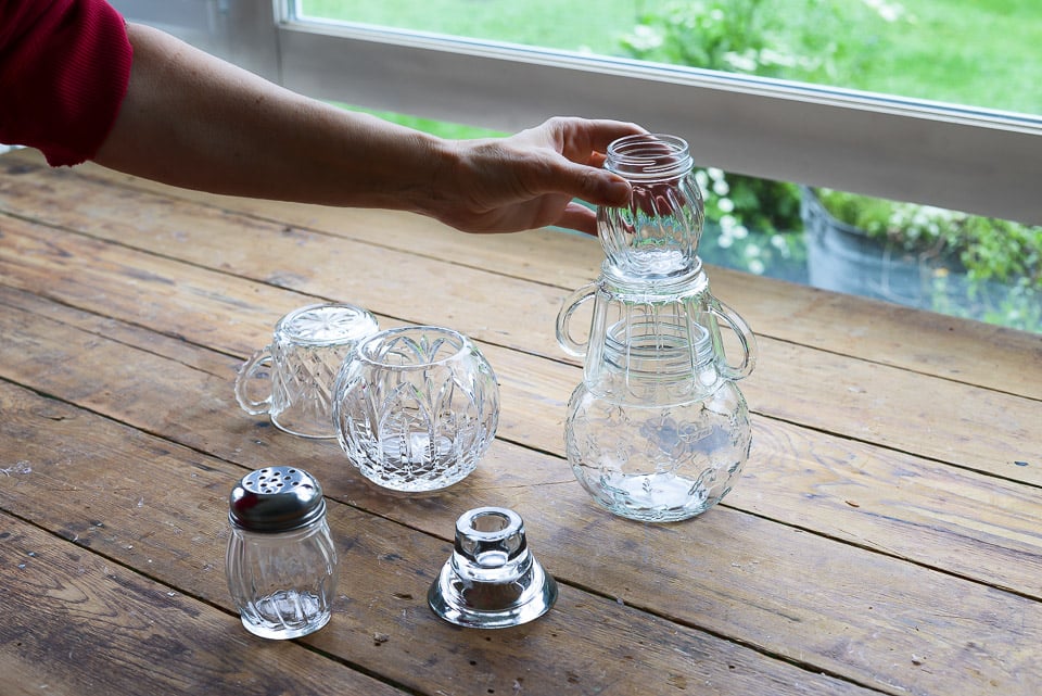 - Clean the bowls spotless, then stack or glue the glass jars together using E6000 clear glue.