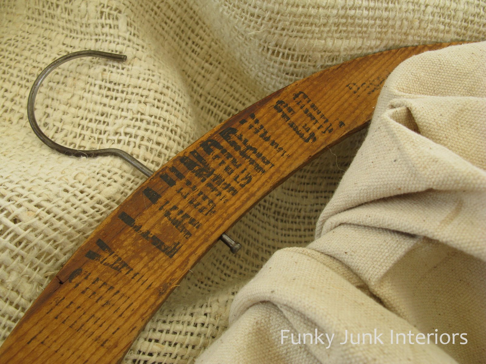 A woodsy antique hanger with weathered clothespins becomes today’s chosen hardware. If you like a look that’s a little less distressed, go new with both and you have a totally different look.