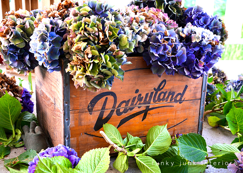 The Hydrangea’s are beautiful totally love the Dairyland box made me think of when I was a kid and the milk man delivered the milk to the house.