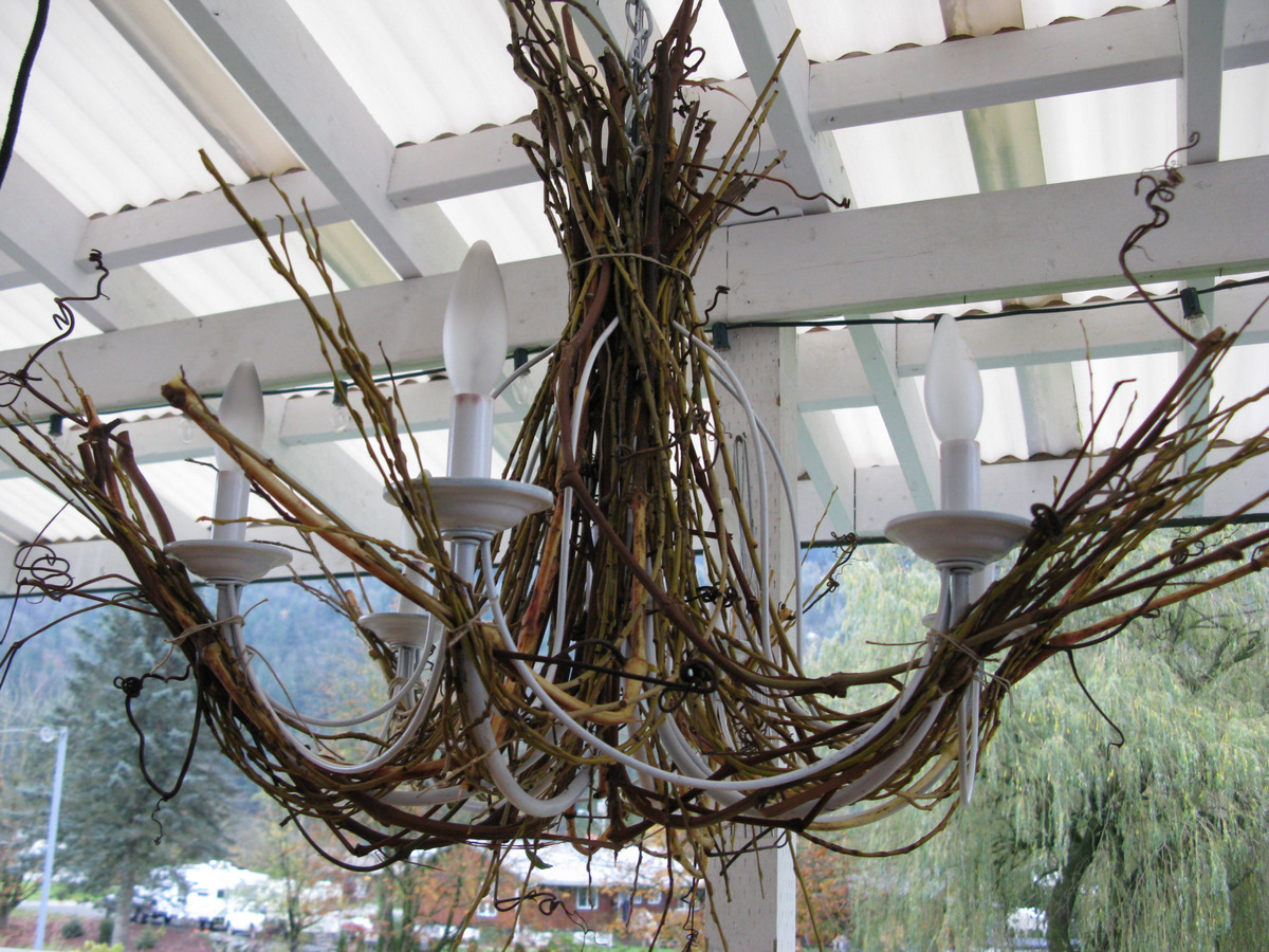 I have just this week ‘rescued’ a tacky chandelier from our neighbor’s trash (under the cover of darkness) to use in our summer home. I shall NOW be adding twigs, grapevines, etc., to the thing. One question: I want this for an outdoor fixture (it will be re-wired to accommodate an extension cord w/plug). What do I need to do to make it fit for outdoor use?