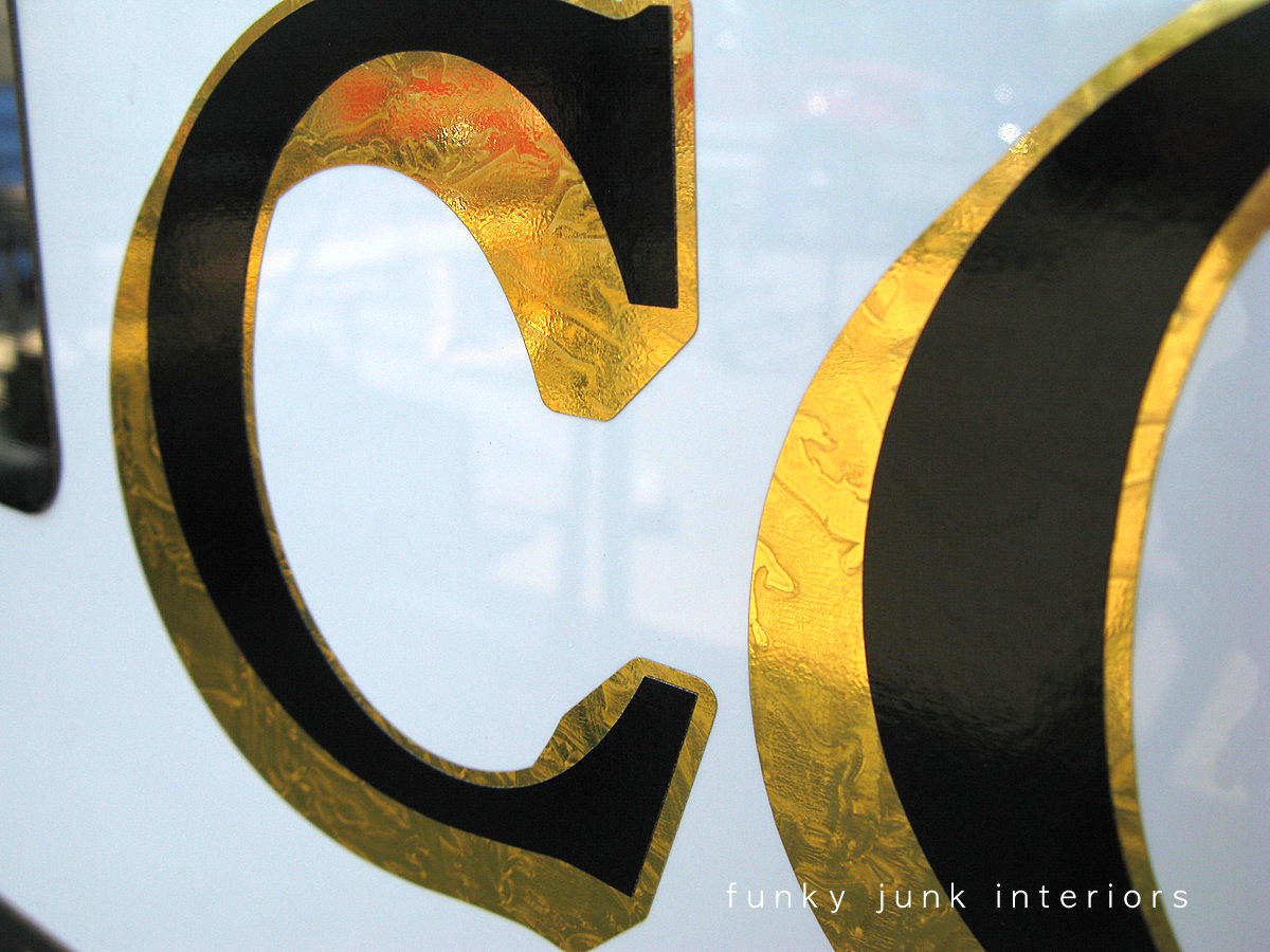 The truck looks fabulous! I love how the gold pops against the black and white.