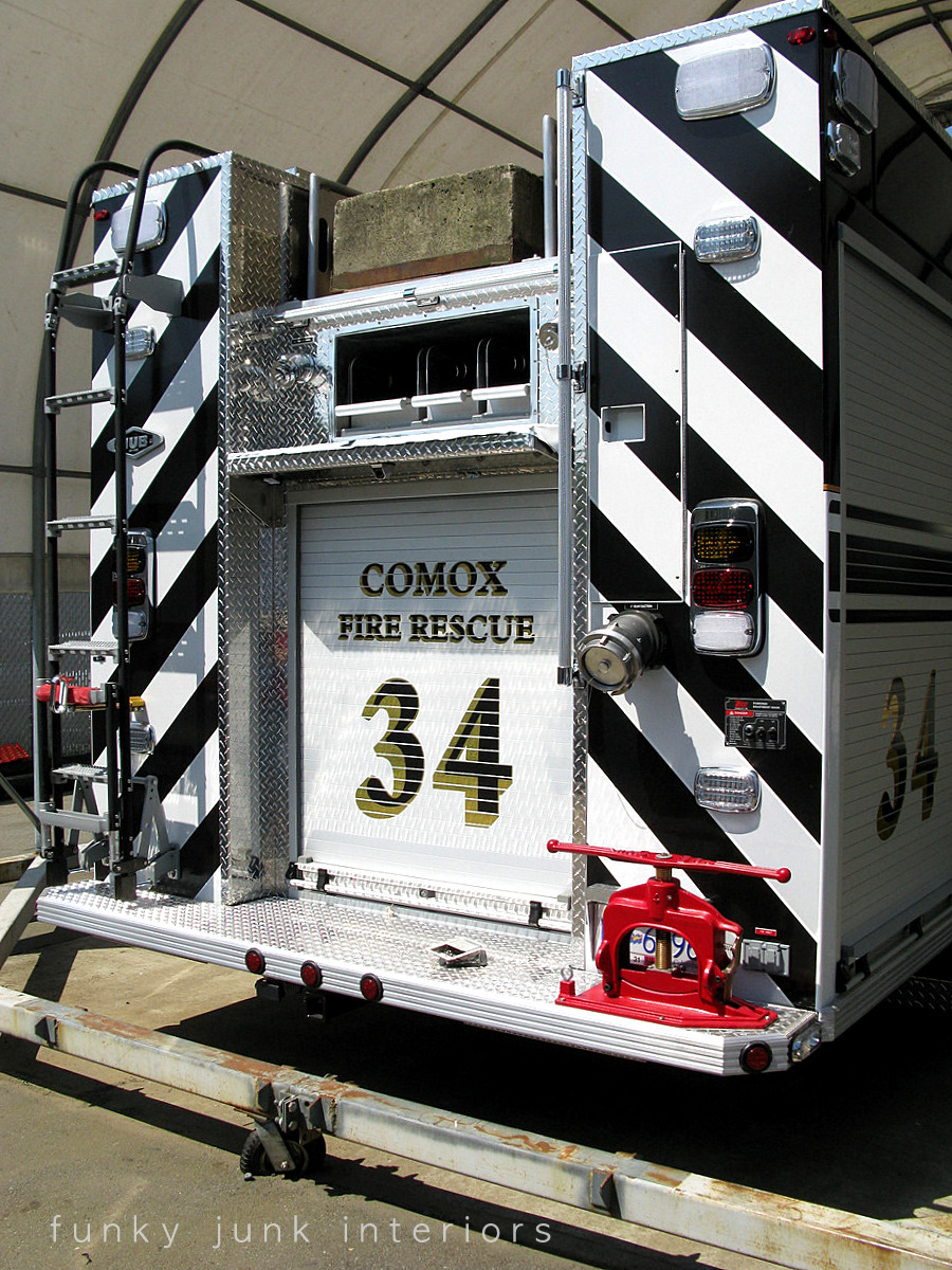 New regulations require loads of reflectivity for emergency vehicles so I’ve been ‘wallpapering’ the backside of firetrucks for some time now. It was just fun to use black and white instead of red and white for a change!