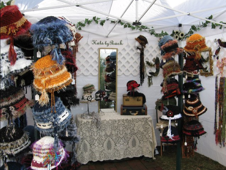 My hats were pretty plain to begin with. Then a buddy of mine gave me some of her scraps, small balls of leftover yarn from some fancy shawls she made. It was at a two day show when she gave them to me, so I sat at the show, worked up a funky hat, over-priced it (or so I thought) just to see what would happen. It sold in 10 minutes. That opened up a whole new world for me. (By the way, I gave my buddy the money for the hat that sold, I was so grateful.)