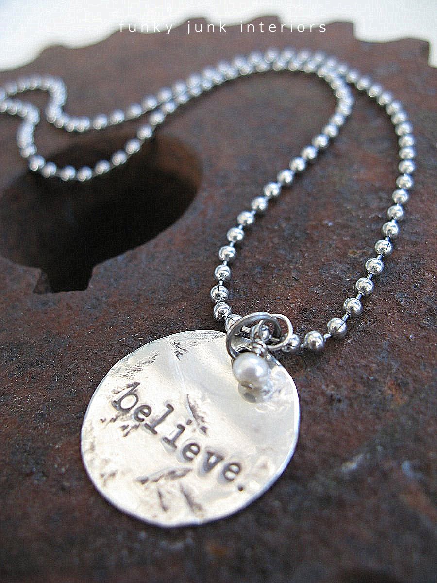 I love the ‘Believe’ and the ‘Dream Teach Inspire’ necklaces very much and I’d have them distressed, too.