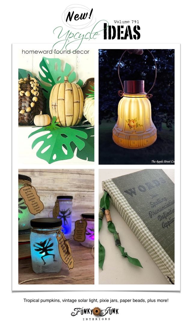 Create 20+ New Upcycle Ideas 791 – Tropical pumpkins, vintage solar light, pixie jars, paper beads, plus more unique repurposed projects to make with supplies you may already have!