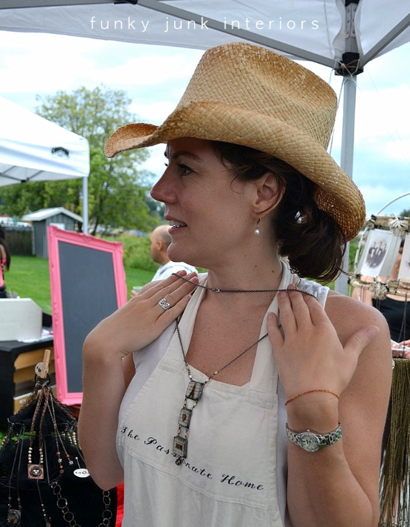 I liked tagging along with you. What a fun day and how many cool ideas were all packed into that field? Getting to hang with bloggers~ always neat to see the faces behind the comments. I loved your necklace. By the way I have that rusty rake part sitting on the top of my stone wall in the yard…gave me a thought when I saw it draped in pearls…