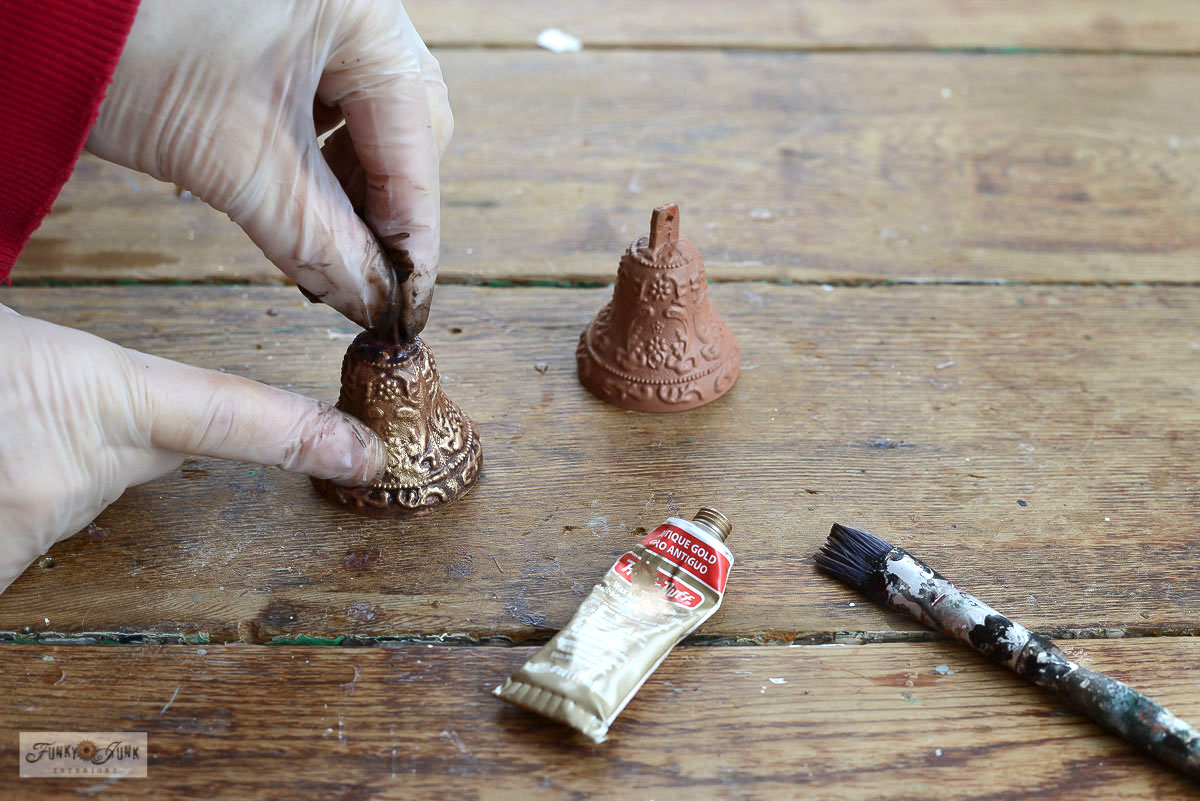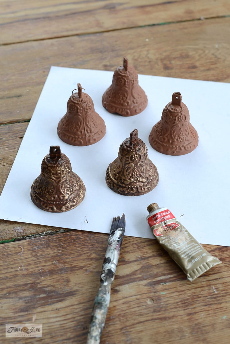 Not only did the faux antique brass bells turn out looking super authentic, this is a very easy and believable technique to do!