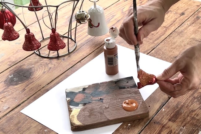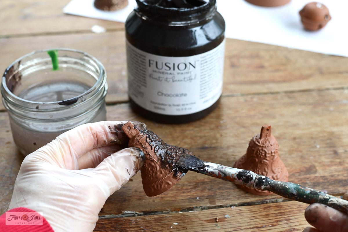3. Create a paint wash of Fusion’s Chocolate with water, then brush on your bells.