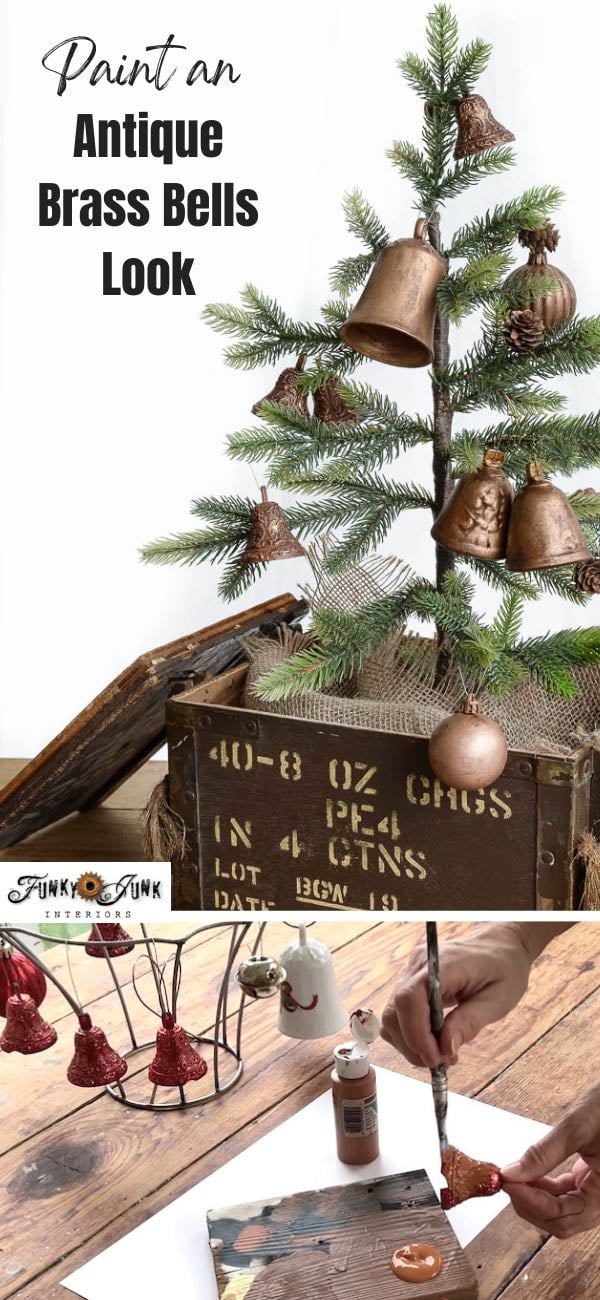 Learn how to paint anything to look like antique brass bells with this easy DIY method! This effect works on nearly any surface and always results looking like real antique brass, including on plastic bells, ornaments, jingle bells, etc. Here’s how!