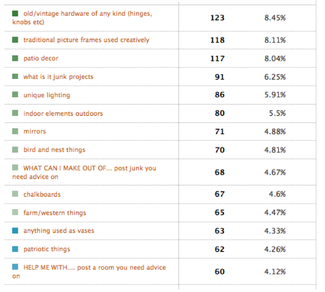 I think #6 would be great for storing fabric pieces. I don’t know if you have much fabric but I do. I would attack #3 to a board along with other assorted hooks for a coat rack or to hang bags or whatever. You always have such great ideas, I’m sure they will all be wonderful projects. Thanks for hosting.