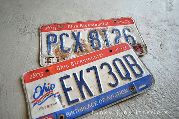 The license plates would be great on bird houses…..I believe I have a few of those old Ohio plates in my barn…hmmmmmm…….