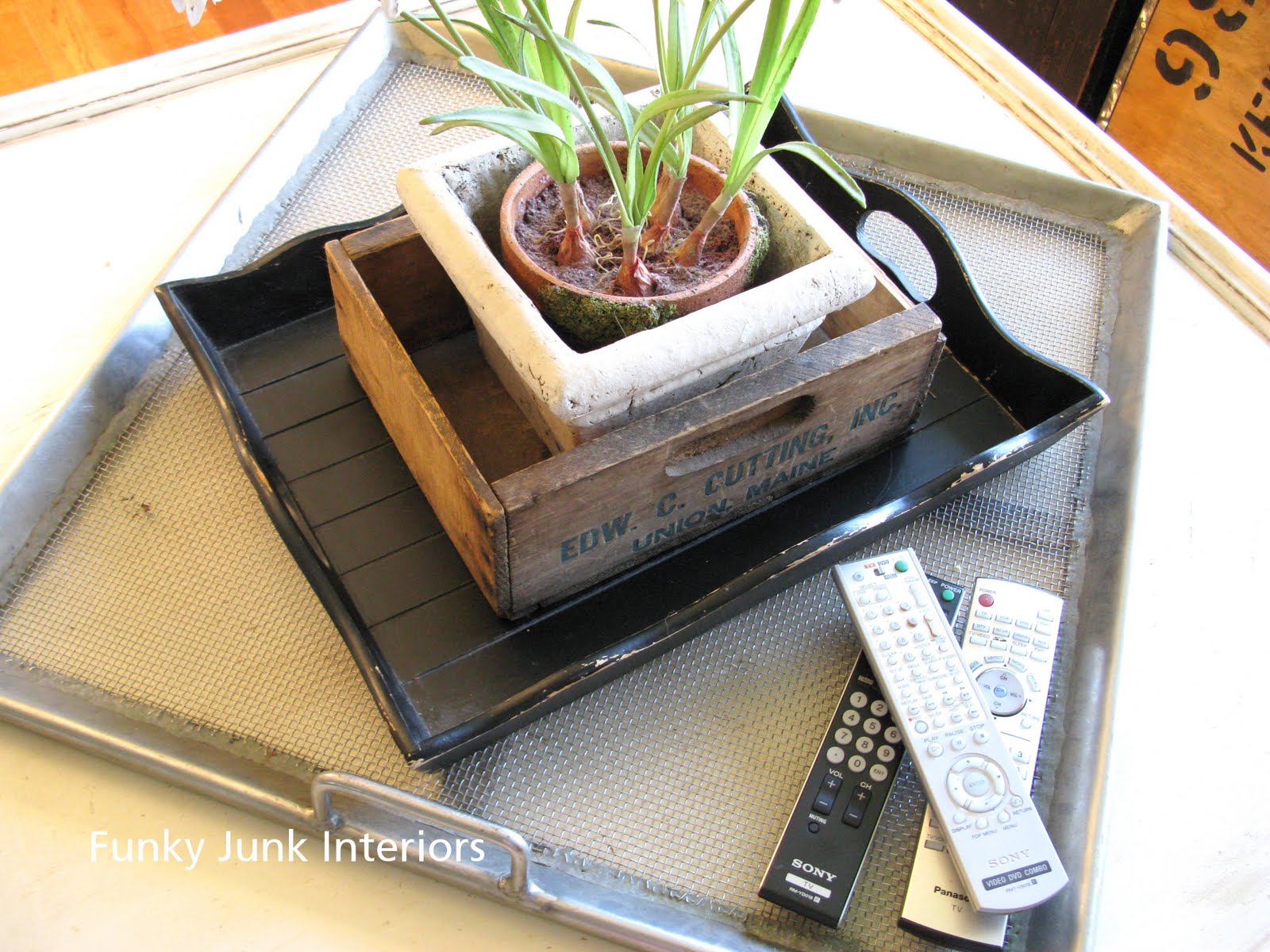 I love your use of the coke crate for a container for your paints…wonderful idea! I use an old cheese box to hold my remotes…keeps them all in one place.