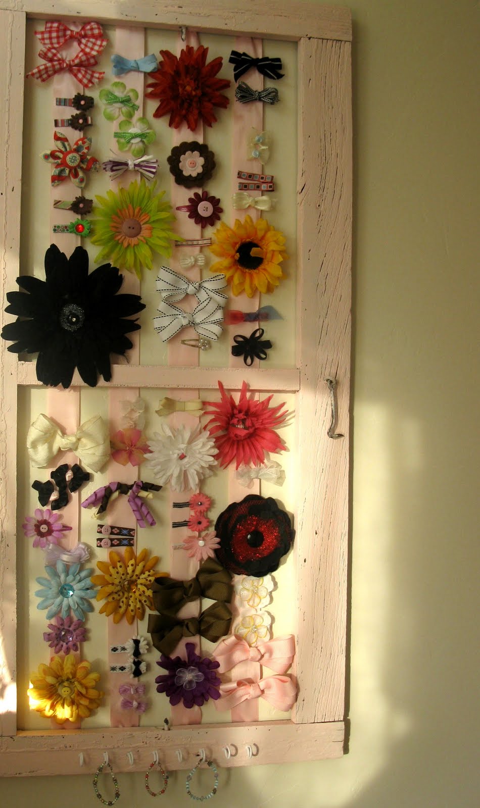 An old window frame becomes a hairclip holder, by Poplar Porch. Sweet idea!