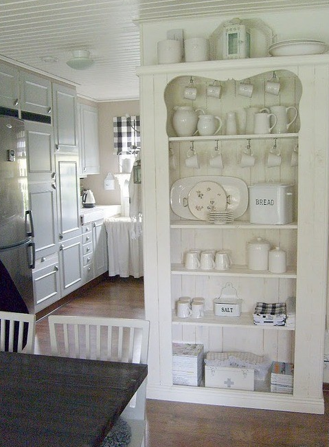 Isn’t this a gorgeous display? Shelving certainly doesn’t have to be the stand alone type! Grab a bookshelf and make it your own.