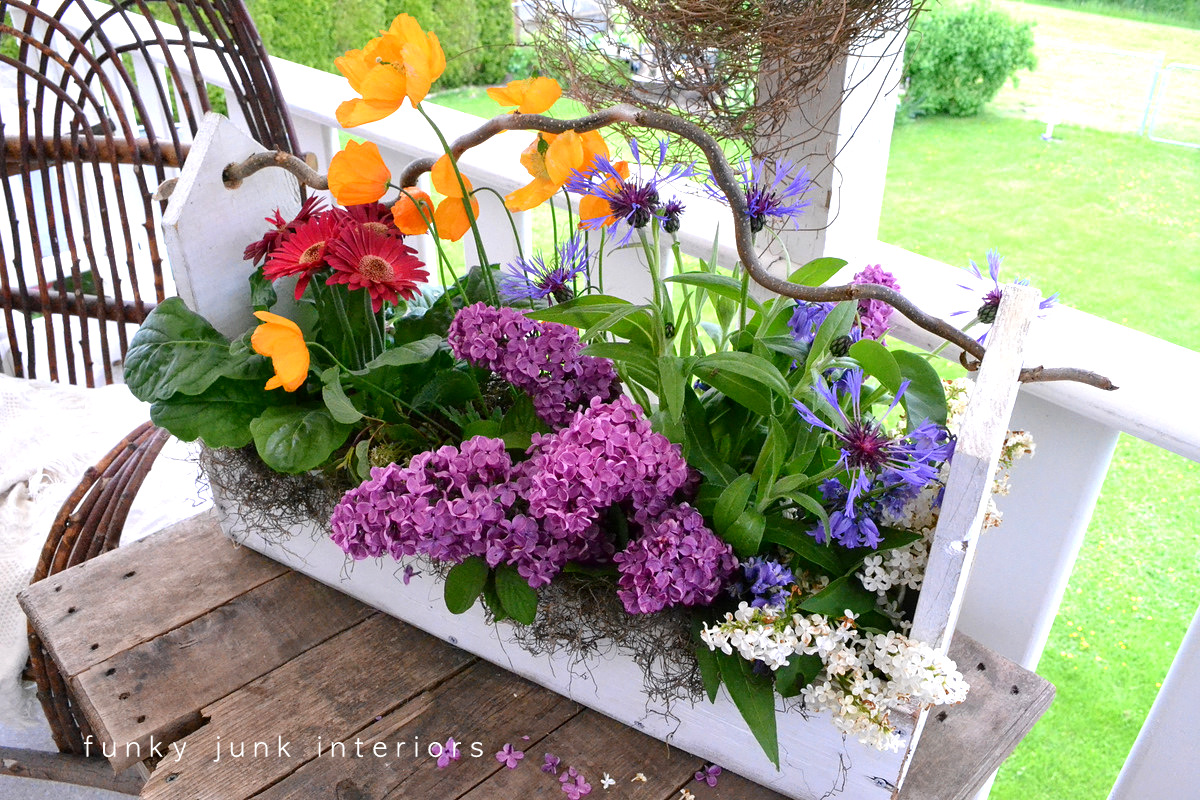 I’ve styled my toolbox with fresh cut perennial flowers from the garden. Isn’t it pretty? And easy to change out as desired too!