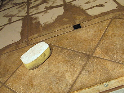 This was just last night while the grout was going on. THE GROUT! I’ve waited forever for this moment. The dog clung to me pretty tight as a thunderstorm was breaking through the sky. And yup, she stayed put just like you see here in the pic. Good girl!