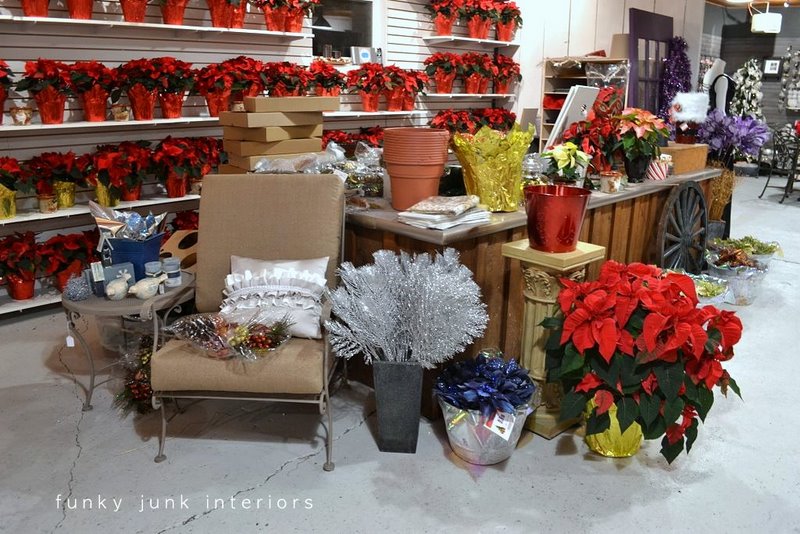 Beautiful shop! I especially liked the old stove and the seatless chair with the poinsettia in it. Lots of great decorating ideas and of course, those gorgeous poinsettias!