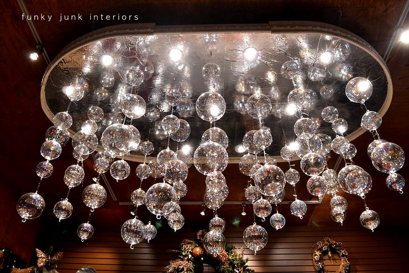 Isn’t this amazing? This was created by Tamara and husband Byron for their daughter’s greenhouse wedding HERE. It’s made out of pot lights and a few hundred glass ornaments.
