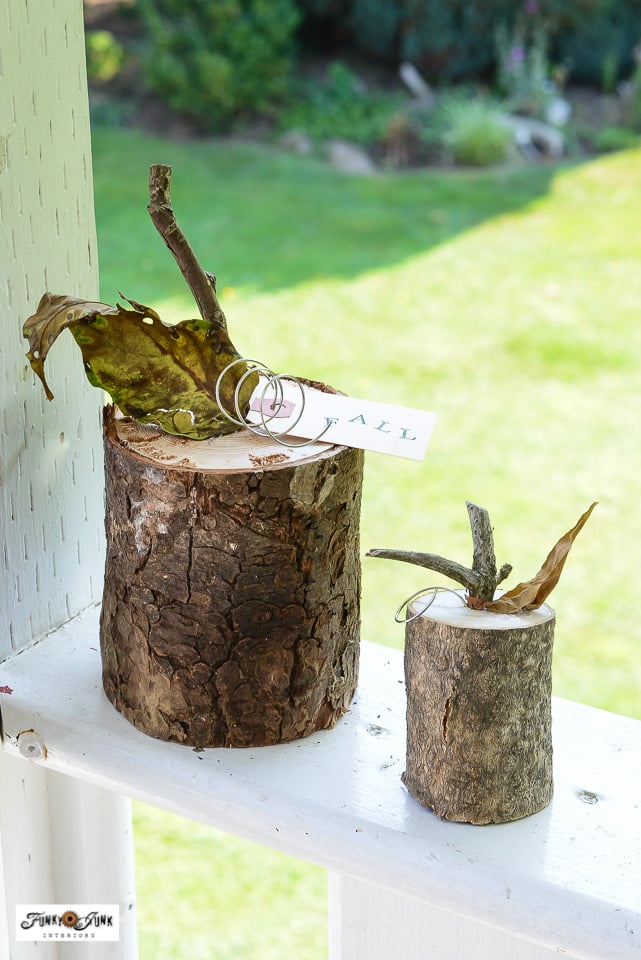 Oh that rustic goodness! I love the unique shapes and sizes of each wood pumpkin, plus their quirky stems!