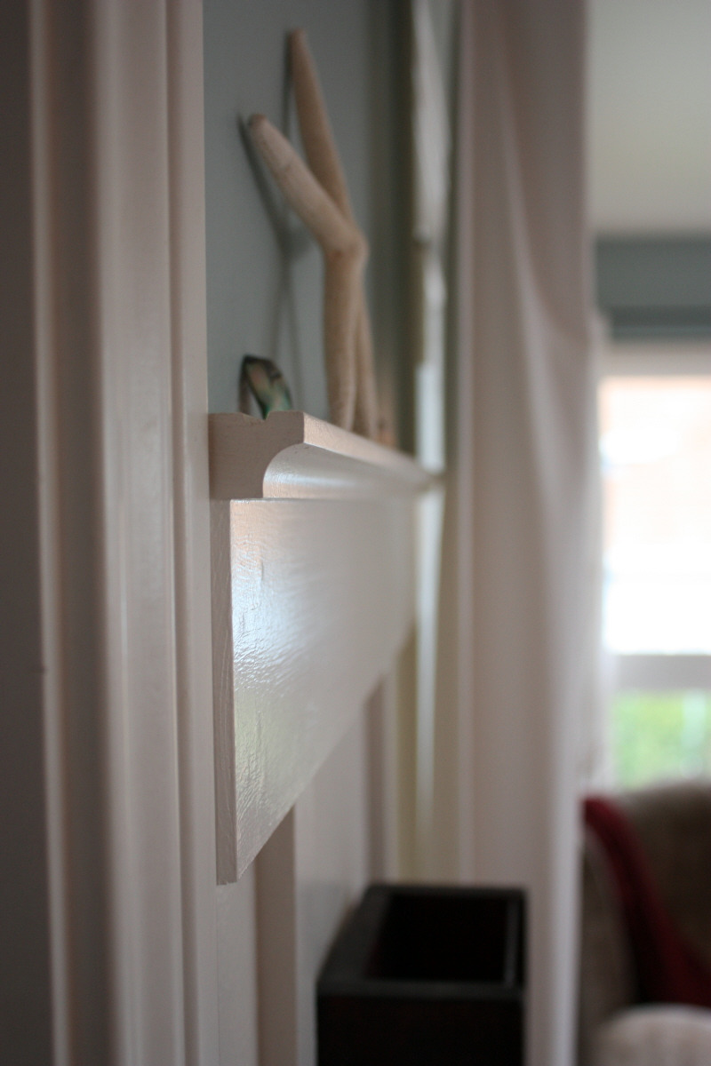 hi everyone, I did Martha Stewart wall paper bead board in the kitchen for back splash and put some wood trim around it, I am also going to bead board my whole dining room with the Martha stewart wall paper bead board, it looks so real, would it look odd if I board and batton my living room being there is bead board in dining? I just have a large living room and want something more durable than the marth stewart nead board wall paper in living room, also I would like to make that little display shelf , where can I find that top piece of wood you have on there? thank you. love your board and batton