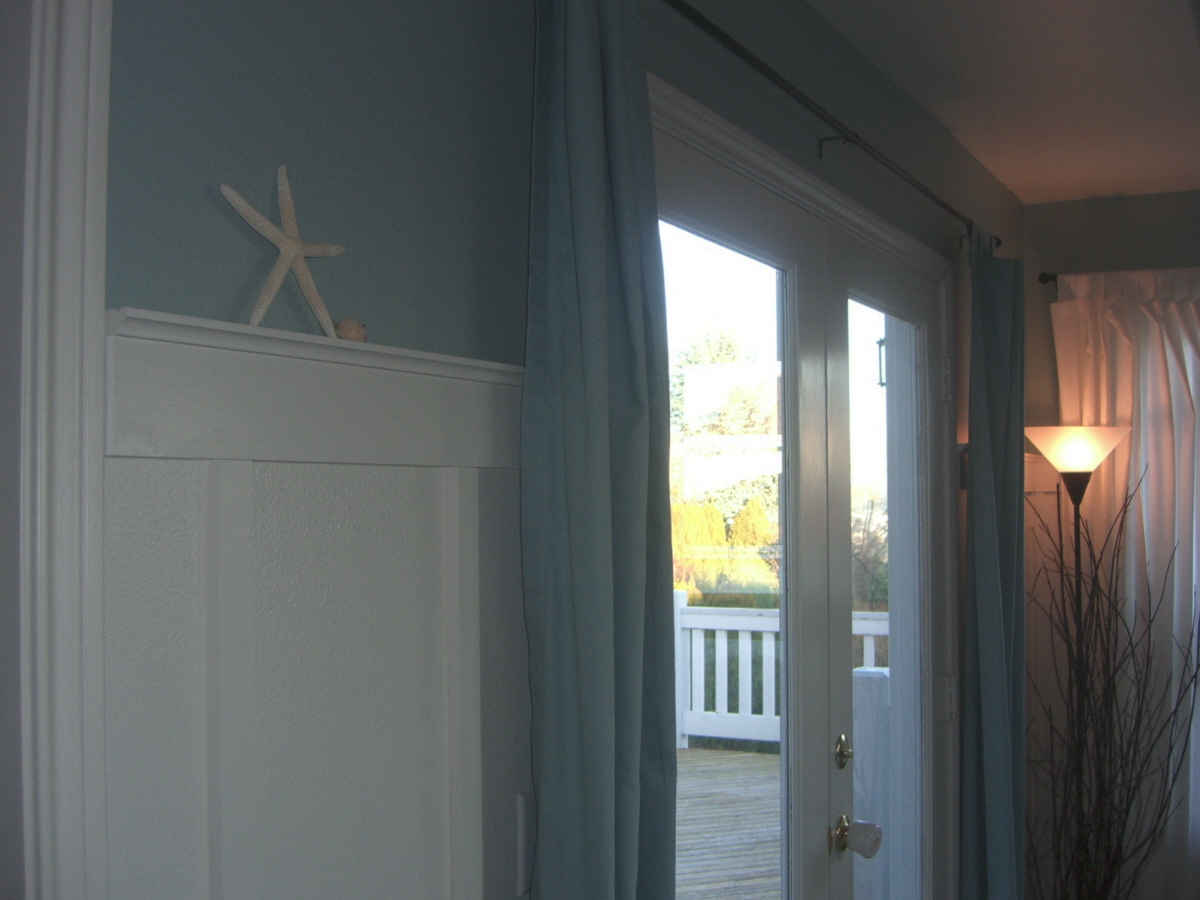 I would just add, if people are going for the full wrap, not to be intimidated by the scope of the project! Putting the boards up and adding the top rail of molding really didn’t take that long (only about 5 hours – and that was for 2 good sized rooms, and we didn’t have any sort of “How To” to follow. We were flying by the seat of our pants for this one!). It was the multiple coats of paint and primer that was the real time consumer.